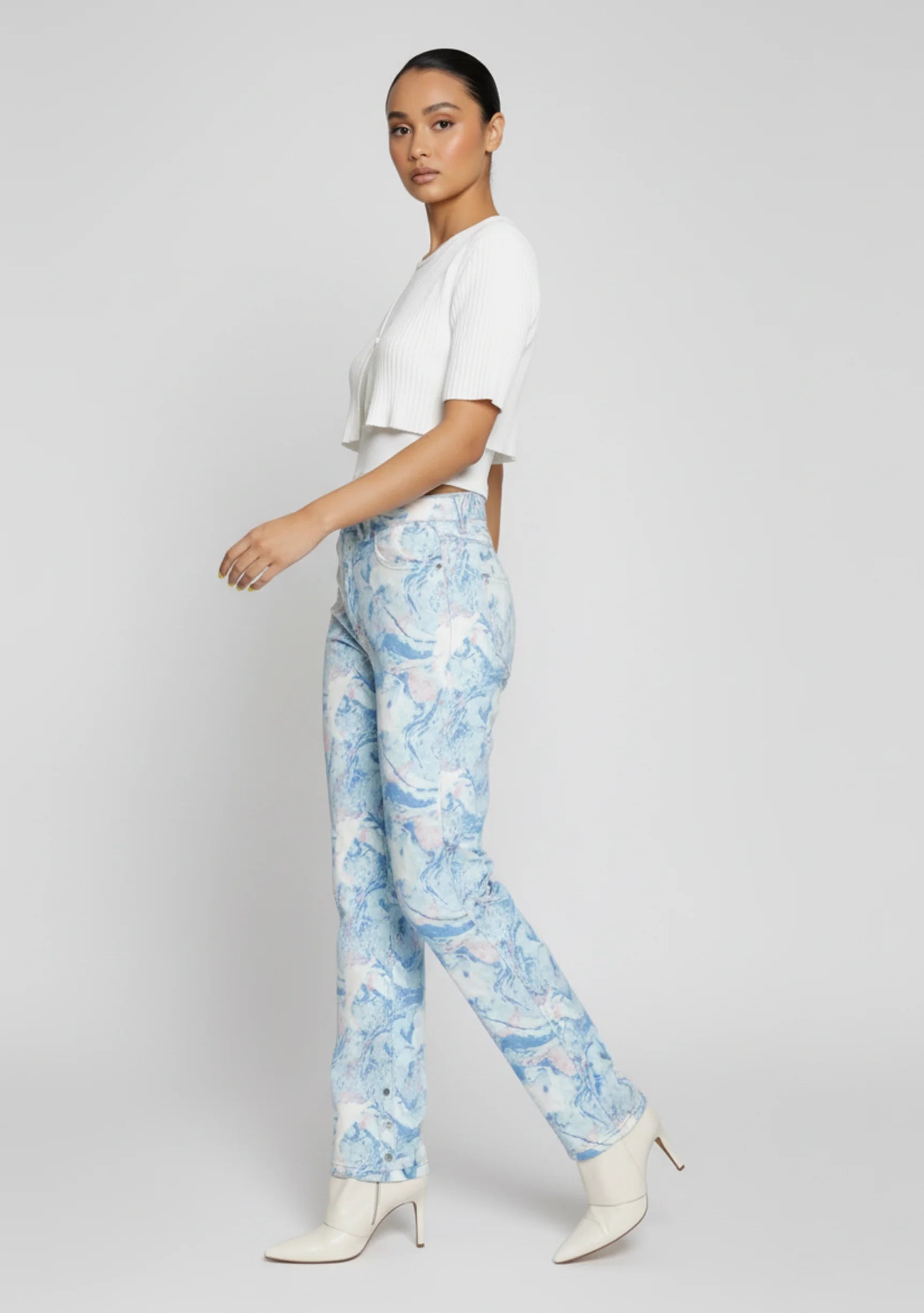 Everly Marble Straight Leg Jeans - Light Blue